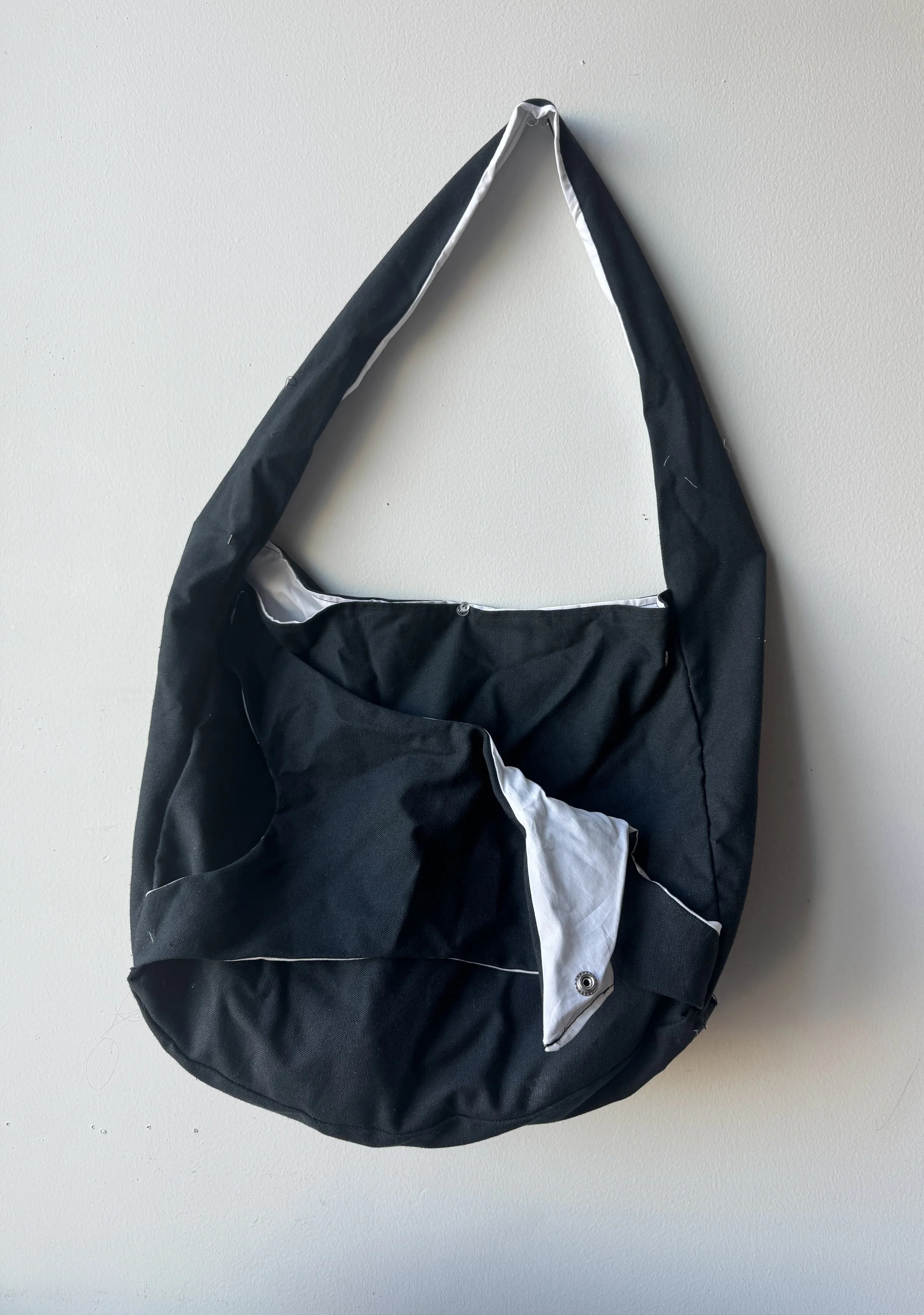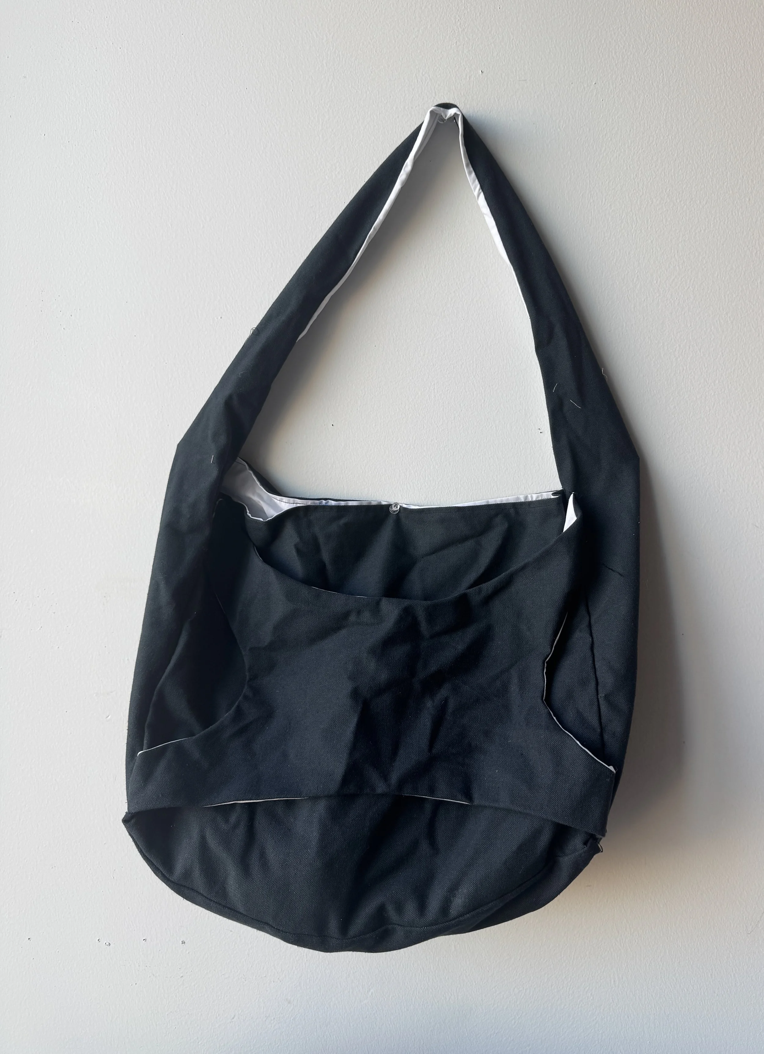 Looking at similar products on the market, I got an idea for the type of form and how it would carry into functionality for the bag. After creating sketches, I developed a loose pattern on Clo3D, which I printed out to full scale to cut my pattern pieces from the fabric before sewing.