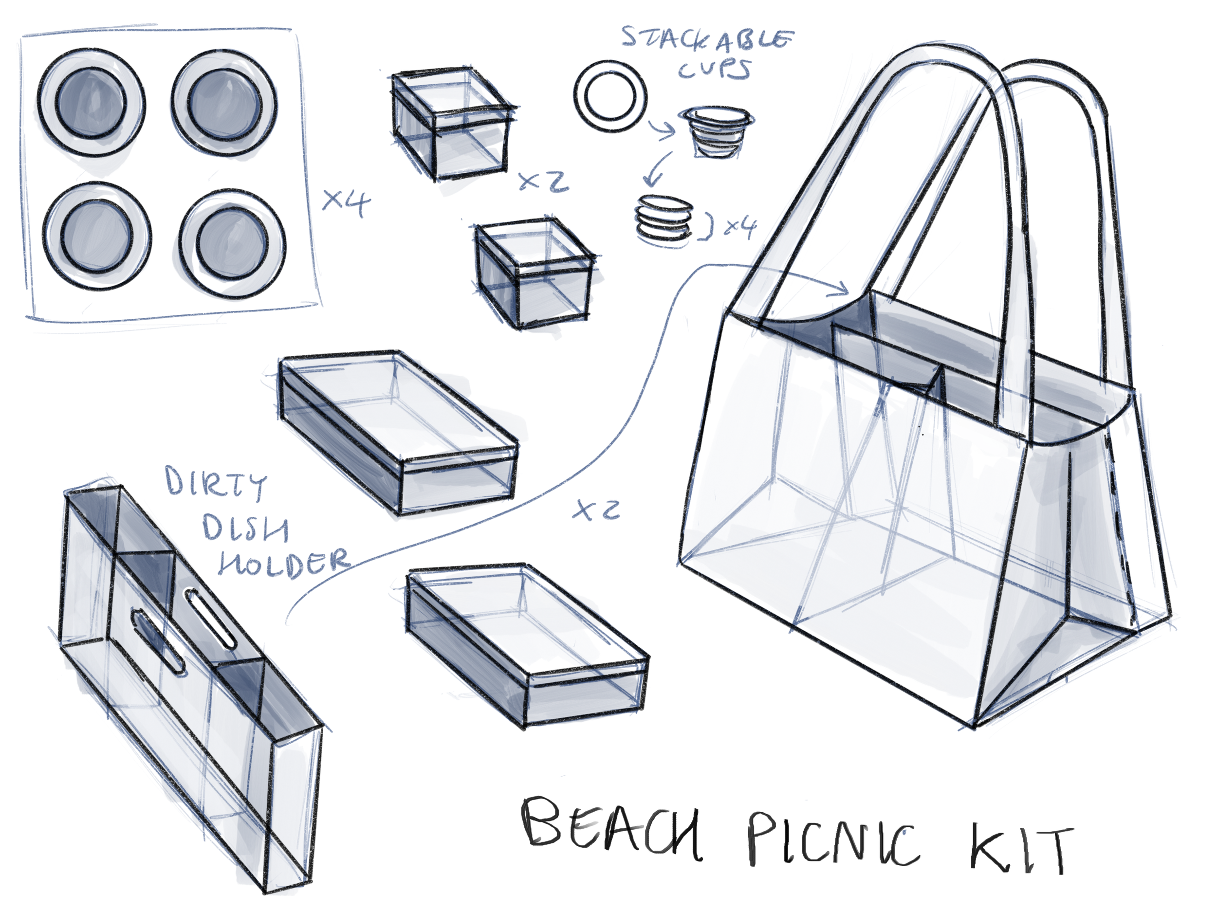 Taking a course on oceanic design, I was given the task to design something that could create a better impact on beaches. I came up with an idea to make a beach picnic bag & kit concept that would encourage people to bring food in containers that were not single-use plastic and could re-use. The bag is designed to carry all of the containers, cups, etc like a tool kit, inspired by picnic products on the market