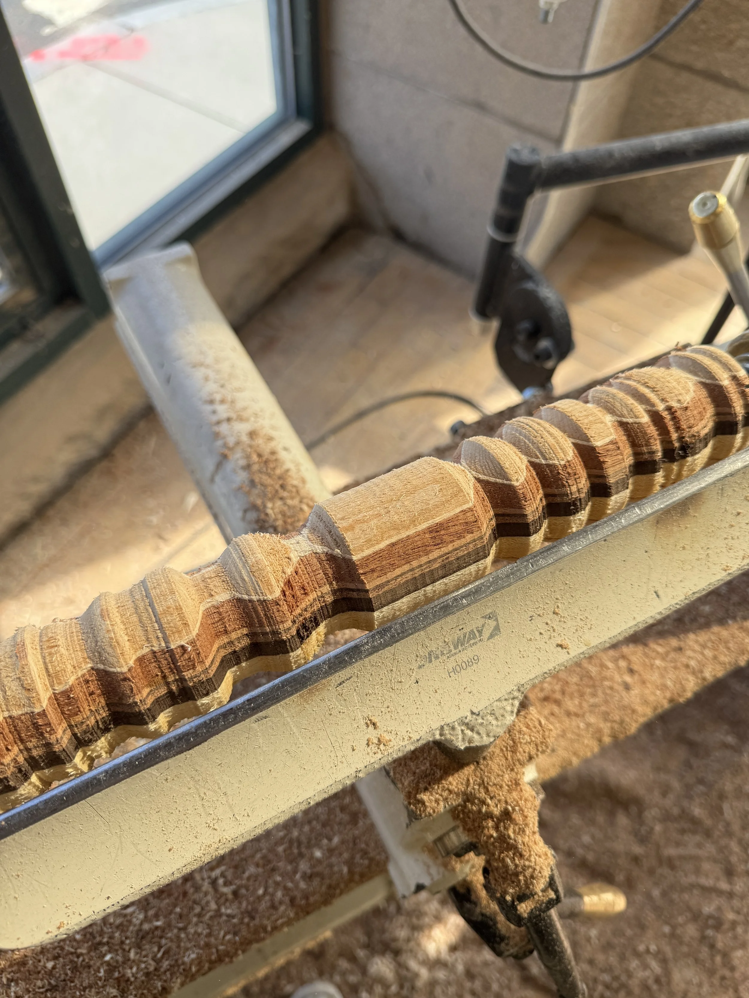 Taking a more spontaneous approach, this jewelry stand was made by laminating strips of wood and turning them on the lathe to carve out grooves for jewelry to hang onto.
