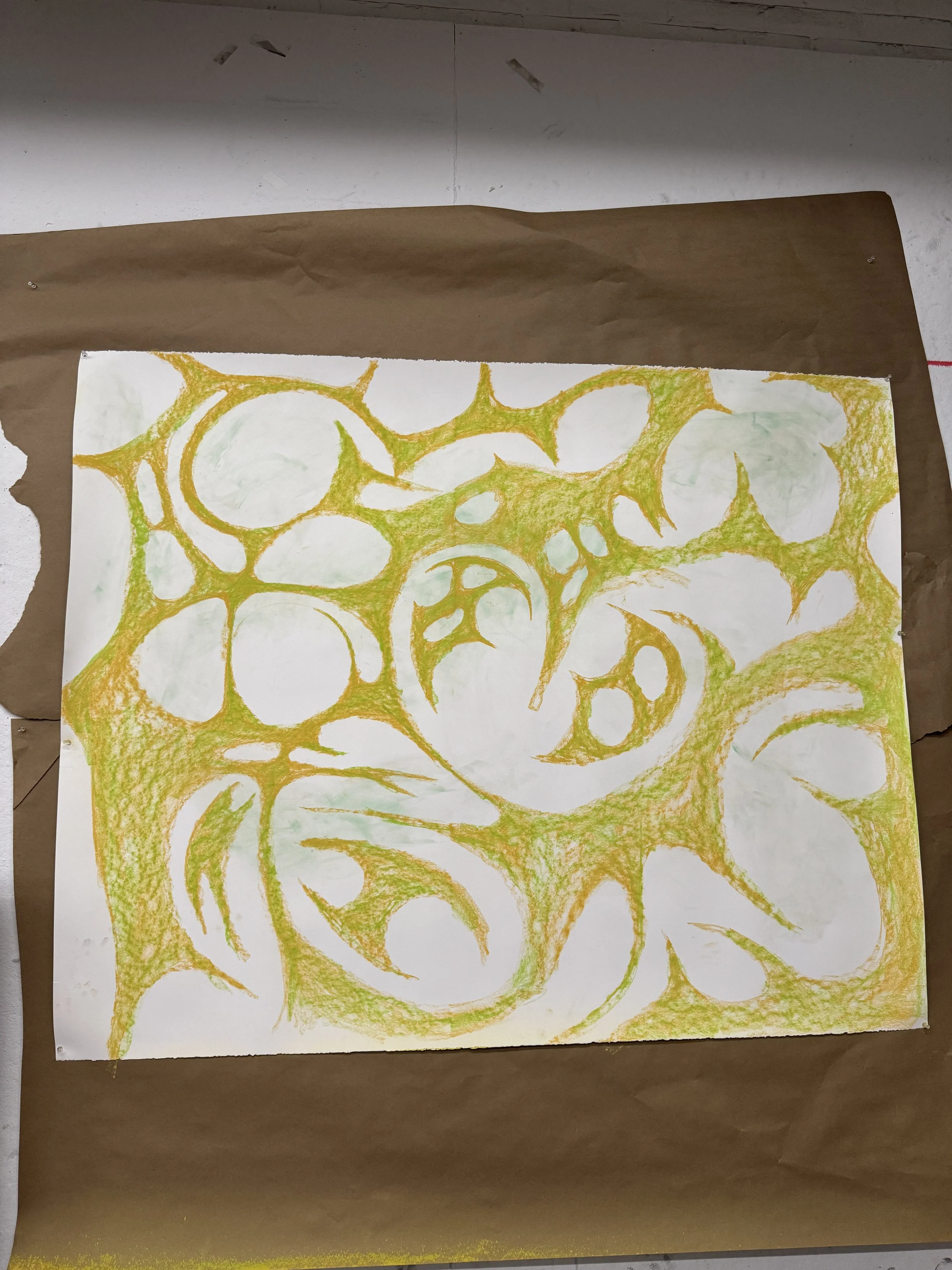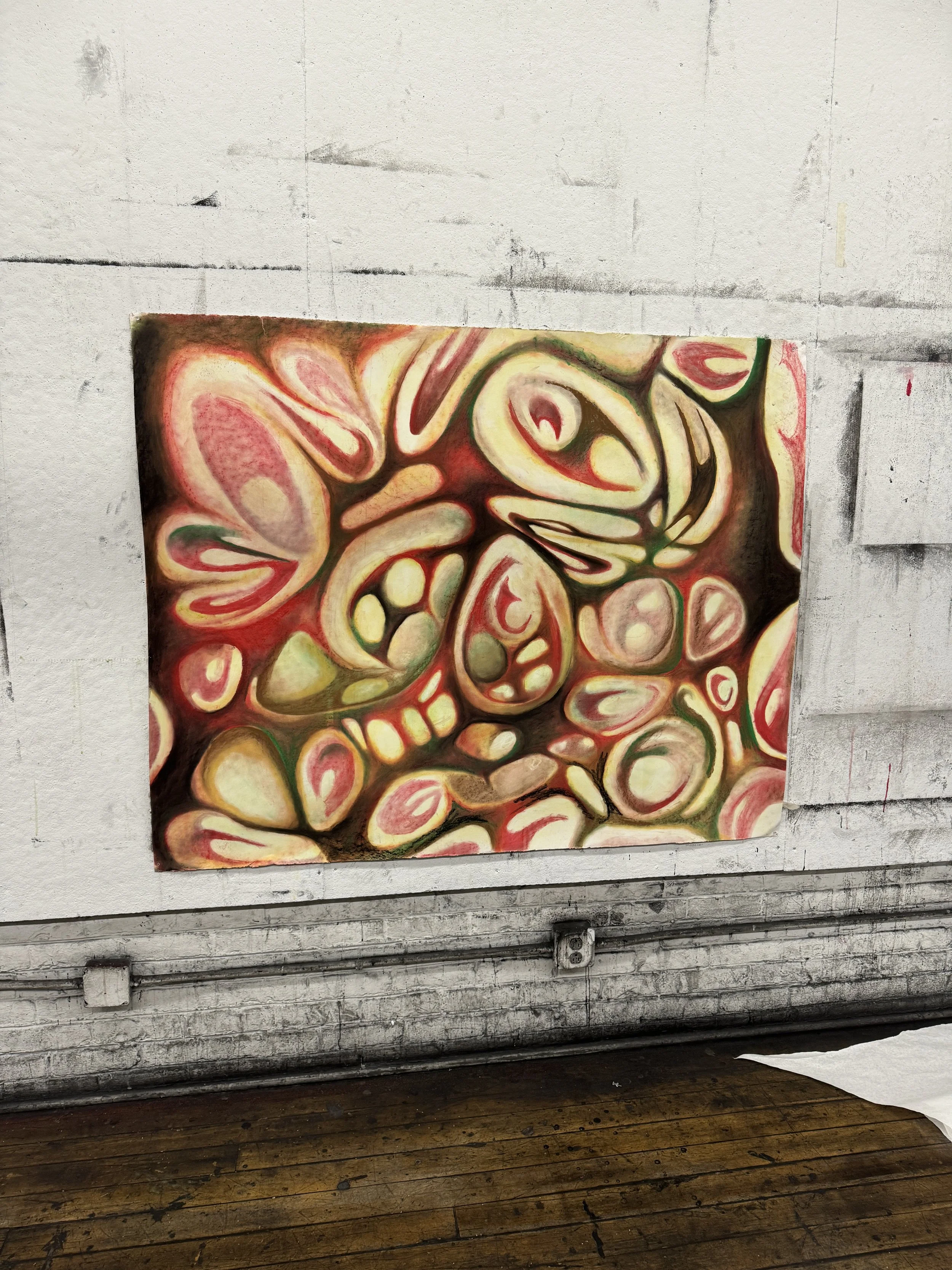 As many of my pieces work on a slightly smaller scale (18”x24” usually), this piece was a test to see if I could translate microscopic imagery or a dramatic zoom to a larger scale. I wanted this piece to have a similar radiance and fluidity like my other works, experimenting with color mixing and unique shapes.