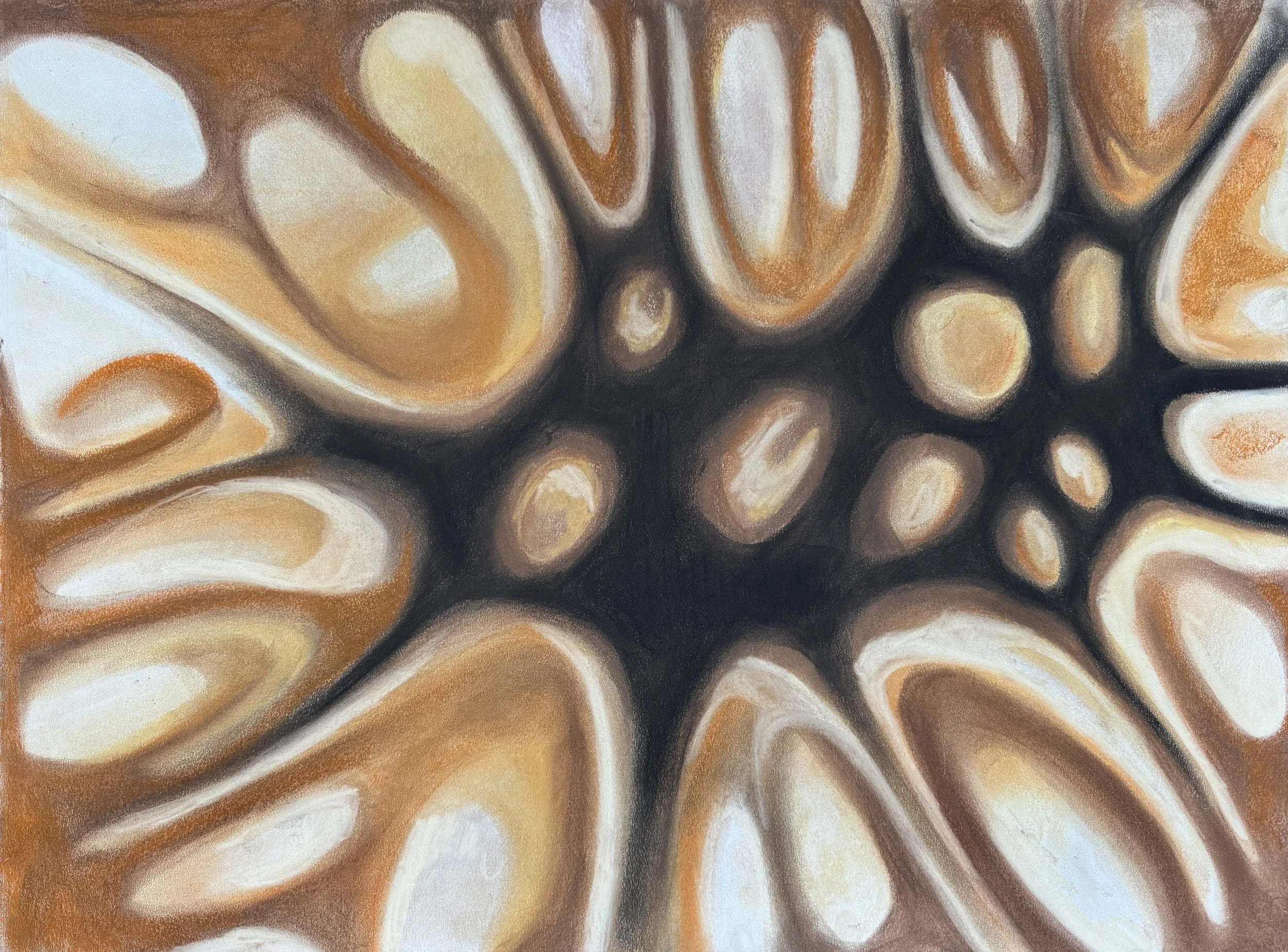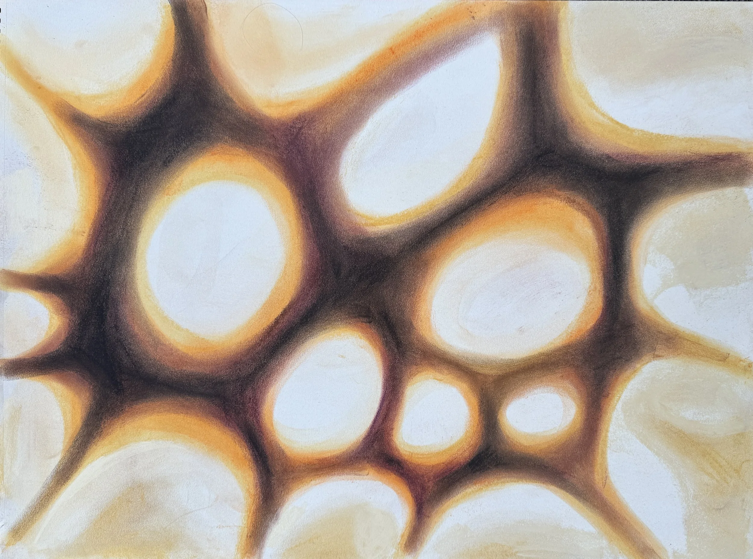 Often inspired by biological images and micro-organisms, many of my works play with optics through color and forms with varying scales. In this series, I want viewers to see these cellular structures as if they are in front of a light box- almost blinding.