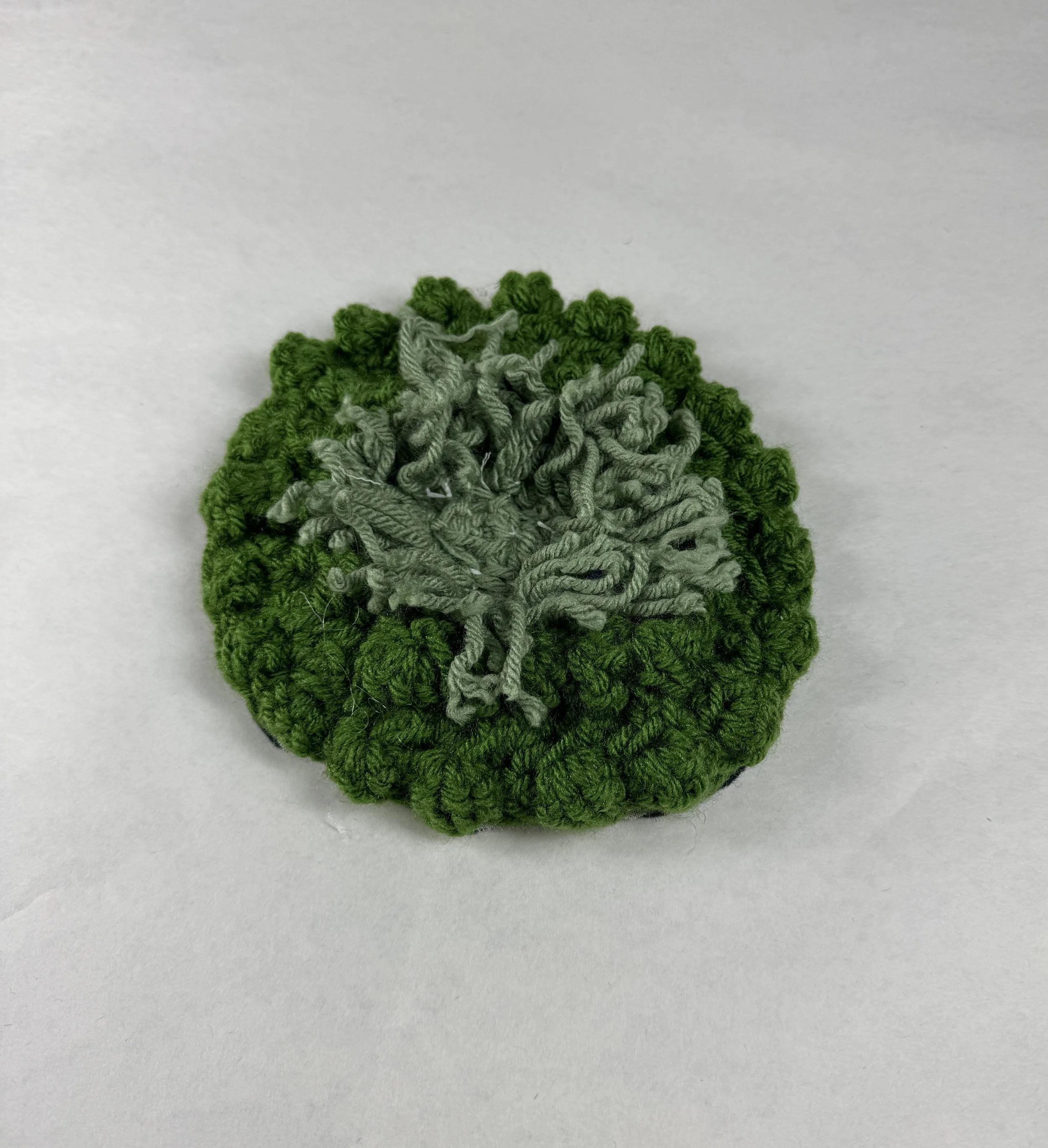 Accompanying a small coffee table, this rug was designed on a smaller scale to explore biophilic design in shared spaces, such as college dorms or lounges. Inspired by topographic maps, this piece uses a variety of textures and techniques. Parts were made using a tufting gun, hand sewn, or hand tufted.